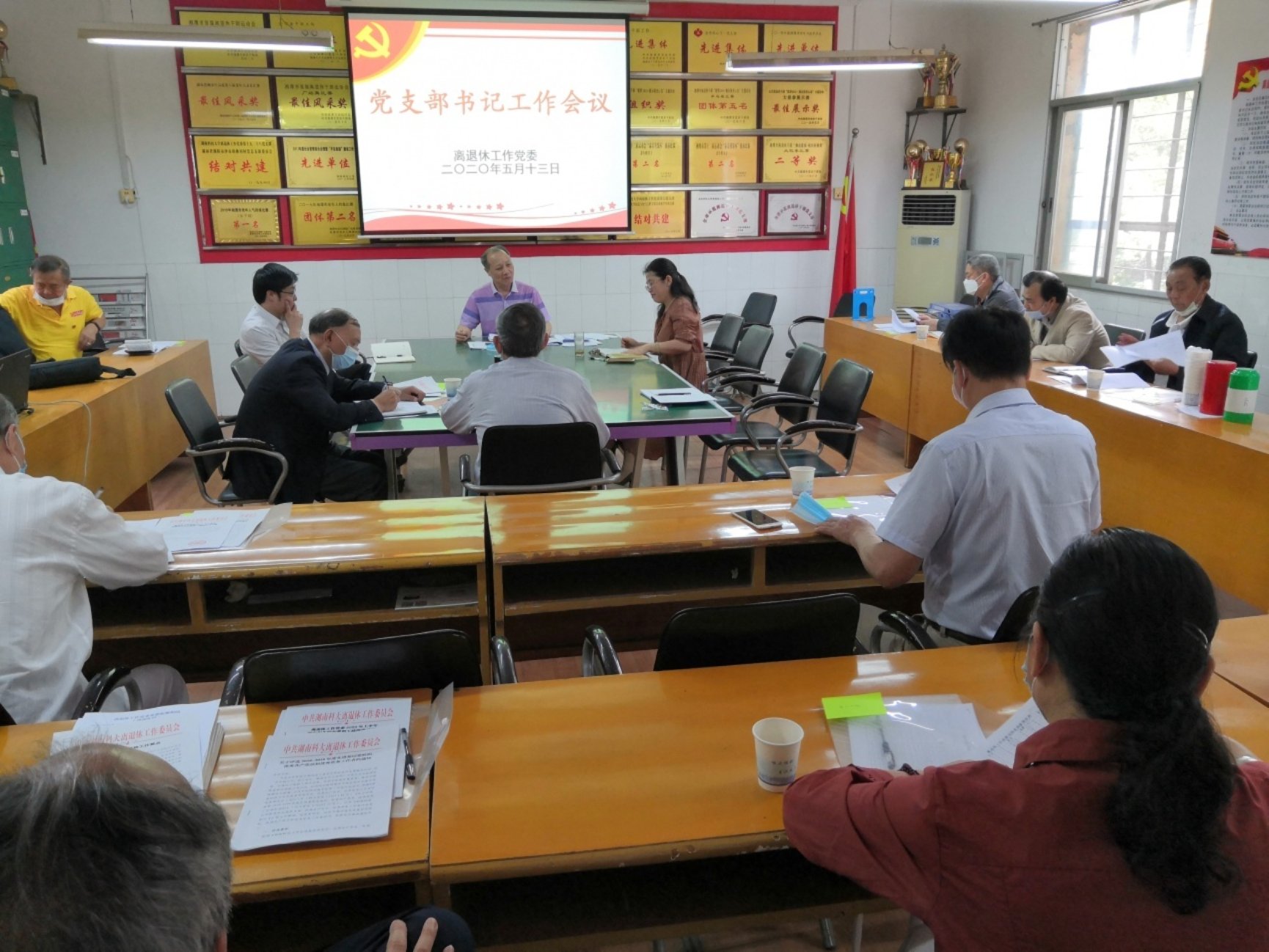 5月13日,上午8点30分,离退休工作党委在处会议室召开党支部书记工作会议。会议由党委书记贺春生同志主持,离退休各党支部书记与会参加。