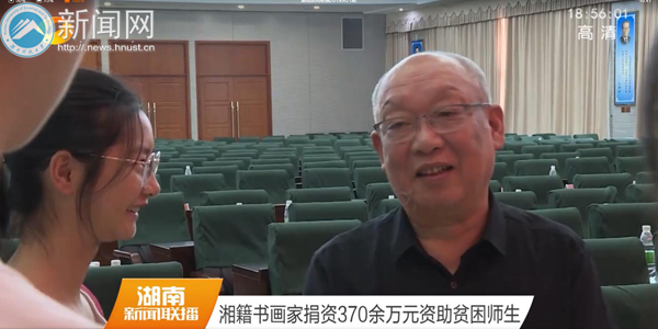 湖南卫视、湖南教育电视台进行了现场采访报道。湖南卫视8月21日《湖南新闻联播》节目以“湘籍书画家捐资370万余元资助贫困师生”为题进行了报道https://www.mgtv.com/b/327911/6236405.html。