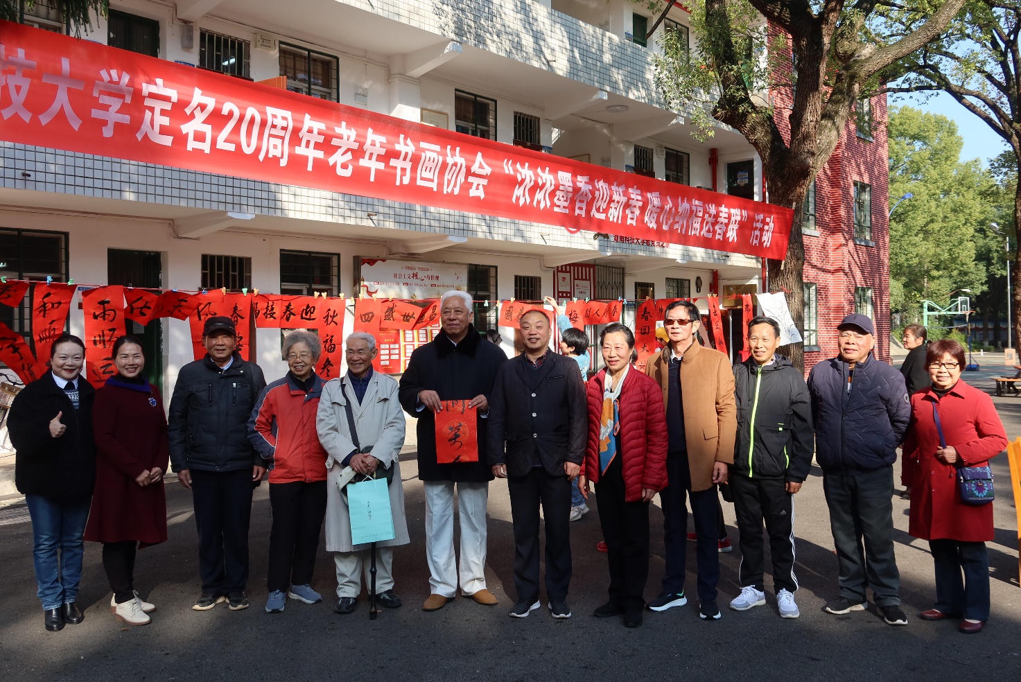 近日,老年书画协会在教工之家前坪举办了“浓浓墨香迎新春 暖心纳福送春联”师生联谊活动,30余位老会员现场书法,共送出春联180多幅、字画十余幅,活动形式新颖,反响热烈,广受欢迎。